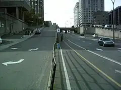 - Elle passe sous deux viaducs : sous la rue Notre-Dame et sous la rue Sherbrooke, mais les voies de droite (ou dessertes) rejoignent chacune de ces artères.