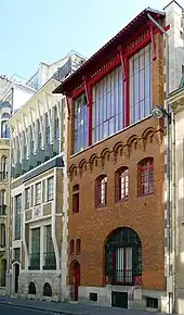 - Nos 12-14 : immeuble construit entre 1930 et 1931 par l'architecte Charles Abella. Celui-ci est inscrit à l'inventaire supplémentaire des monuments historiques[15]. Il est représentatif de l'architecture des années 1930, avec sa pergola sur le toit, ses grandes baies vitrées, son angle arrondi donnant sur la rue, et surtout sa cage d'escalier, identifiable depuis l'extérieur grâce à ses petites fenêtres placées elles-mêmes en « escalier ». Ce sont également les bow-windows à pans coupés des ateliers d'artistes (sur deux étages), qui caractérisent l'architecture et marquent l'époque de construction. L'immeuble comporte une grande frise au rez-de-chaussée, visible depuis l'extérieur, réalisée par Xavier Haas. Plusieurs personnalités ont habité cette adresse[7] dont :