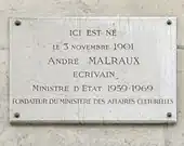 - No 53 : André Malraux naquit en 1901 et vécut dans cet immeuble jusqu'en 1903[9], comme le signale une plaque en façade.