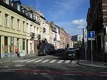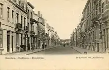 - n°27 à 33 : En 1919, un garage dont la structure métallique a été dessinée par Arthur Pladet ouvre au numéro 29. Il fera la jonction, deux ans plus tard, avec la nouvelle grande chocolaterie de la rue de l’Armistice, jonction complétée par la passerelle surplombant la rue De Neck. En 1921, une partie des festivités du 25e anniversaire de la biscuiterie-chocolaterie se déroulera dans le garage : inauguration du buste d’Émile Bossaert décédé l’année précédente et repas de plus de 1 000 couverts offert au personnel. Des logements ouvriers seront construits en même temps par la société au numéro 31, préfigurant ceux que la firme fera édifier en 1923 rue Léon Autrique et rue du Cubisme, et les dix-sept maisons unifamiliales dont elle fera progressivement l’acquisition pour son personnel rue De Neck[3].