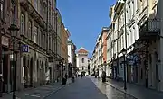 N° 26. L'immeuble possède (entre deux énormes contreforts) un portail à fronton triangulaire, unique à Cracovie, dans la partie supérieure.
