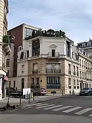 - No 35 : emplacement de l'atelier de sculpture de Sarah Bernhardt, qu'elle a fait construire à côté de son hôtel particulier (voir n°37-41). L'atelier est ensuite démoli par Stéphane Dervillé (1848-1925), ancien président du PLM, peu après que sa mère ait acheté l'hôtel Sarah Bernhardt. Les Dervillé font construire ce petit hôtel néo-gothique, suivi d'une partie Renaissance avec galerie à l'étage. Outre l'architecte Louis-Victor Legrand, il est fait appel au décorateur Joseph Chéret pour la façade, ainsi que pour l'aménagement intérieur[20]. À noter les petits rats sculptés qui courent sur le mur. En 2012, il est acquis par l'ancien Premier ministre Dominique de Villepin[21]. Il héberge aujourd'hui une société privée.