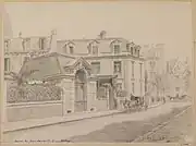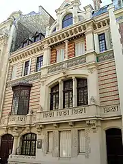 Démoli, il est remplacé par un immeuble construit en 1956 par des architectes Jean Lefèvre et Jean Connehaye. Ce bâtiment est caractéristique de l'architecture moderne, avec l'emploi du béton armé et du béton précontraint pour les dalles. Les étages supérieurs servent d'habitation et sont disposés en gradins pour respecter le règlement d'urbanisme[24],[25]. - No 42 : hôtel particulier de style néo-Renaissance construit en 1879 par l'architecte Alfred Boland pour le maître verrier Joseph-Albert Ponsin. Une de ses verrières avait été primée lors de l'Exposition universelle de 1878 qu'il avait fait placer sur la façade de son hôtel. Elle a aujourd'hui disparu, les cariatides existantes sur la façade l'encadraient. Louis Esnault en donnait une description dans l'article « La grande verrière de l'Exposition universelle de 1878 » dans la revue L’Art, revue hebdomadaire de 1880. Joseph Ponsin présenta à l'Exposition universelle de 1900 un « palais lumineux », en verre soufflé et moulé, créé pour la manufacture de Saint-Gobain[26].