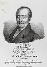 La rue porte le nom de Joseph-Marie Degérando ou de Gérando, Baron d'Empire, né à Lyon le 29 février 1772 et mort à Paris le 10 novembre 1842. Il est linguiste, pédagogue et philanthrope français. Il compte également parmi les précurseurs de l'anthropologie et premier penseur de la méthode d'observation participante. Il est un proche de Napoléon de Bonaparte ce qui l'aidera par la suite à obtenir ce nom de rue à son honneur. 20 ans plus tard, après sa mort