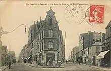 C'est à l’angle de cette rue et de la rue du Président-Wilson que Nicolas Levallois y installa son bureau pour réaliser les premières ventes de lots de la ville.