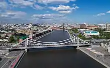 Le pont de Crimée et, arrivant de droite, la rue du pont de Crimée. À droite, la Nouvelle Galerie Tretiakov.