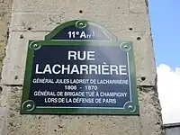 Elle porte le nom du général de brigade, Jules Marie Ladreit de Lacharrière (1806-1870), tué à la bataille de Champigny.