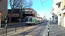 Elle est desservie par la ligne 1 du tramway d'Île-de-France à la station L'Île Saint-Denis. Le tramway a la particularité sur cette artère d'être sur une plateforme partagée avec la circulation générale, la largeur de la rue ne lui permettant pas de disposer d'un site propre.