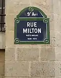 - Rue Milton, entre la Cité Fénelon et la rue de La Tour-d'Auvergne