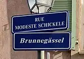 Au moment de l'occupation, les autorités allemandes la renomment Brunnensackgässchen, mais en 1945 elle retrouve définitivement son appellation française, rue Modeste-Schickelé[1].