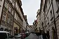 - 33/240: Palais Bretfeld, (avec des statues allégoriques baroques de l'Eté et de l'Hiver), avant 1769. Nom d'après l'avocat FJ Bretfeld, recteur de l'Université de Prague et célèbre bon vivant, qui a tenu des bals ici. Casanova et Mozart y demeurèrent.