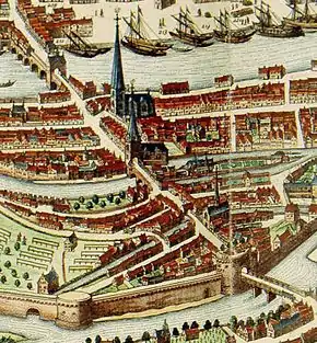 - Elle est connue sous le nom de « porte de Sock » ou « porte de Chock ». Après la construction de la deuxième enceinte au XVIe siècle, elle devient la fausse porte de Saint-Nicolas.
