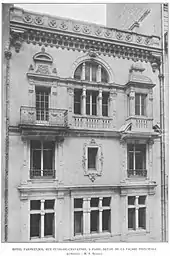 - No 12 : hôtel particulier construit en 1904[9], dont la sobriété de la façade, animée seulement de quelques courbes, contraste avec le style éclectique des hôtels particuliers du quartier. L'architecte en est Lucien Roy[10] (1850-1941) qui fut architecte en chef des monuments historiques et à ce titre dirigea en particulier la restauration du château de Chenonceau. L. Roy présenta sa réalisation du 12 rue Puvis-de-Chavannes au salon d'architecture de la Société nationale des Beaux Arts de 1904, ce qui lui valut le commentaire suivant : "Sans tomber dans l'exagération des formes nouvelles, M. Roy sort de la banalité des formes connues. Nous ne pouvons qu'applaudir à ces tentatives d'un artiste fort distingué, qui, sans oublier le passé, sans surchauffer son imagination, marche de l'avant avec une sincère conviction"[11].