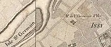 Sur la carte des Chasses du Roi, datant du XVIIIe, une remise de l'abreuvoir d'Issy est visible à cet endroit, ainsi que le tracé approximatif de la rue actuelle.