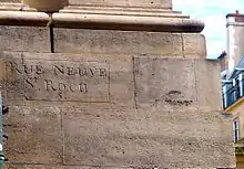 - No 1 : à cet emplacement de la rue Saint-Roch se trouvait une maison où mourut Vauban, maréchal de France (1633-1707)[3]. Lors des cérémonies du tricentenaire de sa naissance en 1933, la ville de Paris a inauguré une plaque commémorative à l’emplacement de la maison de Vauban détruite lors du percement de la rue de Rivoli. Cette plaque se trouve au niveau du premier étage à l’angle de la rue Saint-Roch et de la rue de Rivoli, non loin de l’église Saint-Roch[4].