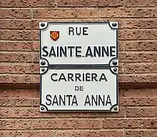 Si l'orientation nord-sud de l'actuelle rue Sainte-Anne correspond approximativement à une des voies romaines de la Toulouse antique, celle-ci passe plus à l'ouest, sous le sol du bâtiment de la préfecture (actuelle rue Saint-Jacques-no 1 rue Sainte-Anne). Elle se trouve par ailleurs à proximité du rempart qui entoure la ville depuis le Ier siècle et passe au milieu du moulon entre les rues Sainte-Anne et Bida[2]. Cette voie monumentale est tracée et aménagée dans le 2e quart du Ier siècle. Large d'environ 12 mètres, elle permet de desservir un quartier aménagé et occupé dès le Ier siècle, qui bénéficie d'équipements en particulier de l'eau du coteau de Guilheméry, apportée par un aqueduc[3].