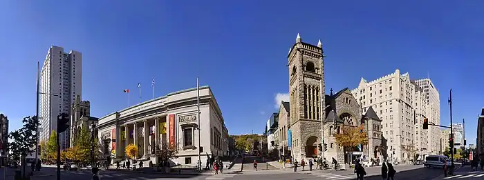 La rue Sherbrooke, en 1817, consiste en deux tronçons dans un premier temps, de la rue de Bleury à la rue Sanguinet. Son éloignement relatif du centre pour l'époque rend difficile l'établissement d'industries ou de manufactures. De nombreuses maisons de santé et d'enseignement s'y établissent au XIXe siècle, comme l'Université McGill, l'école normale Jacques-Cartier, le collège Mont-Saint-Louis et le couvent du Bon-Pasteur.