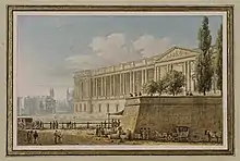 L'architecte Nicolas Lenoir construit dans l’îlot du nord un ensemble de cent travées de sept niveaux sous une forte corniche dorique qui impressionne par son austérité et sa monumentalité. Au sud se trouve l'hôtel d'Angiviller et ses jardins, sur l'emplacement de l'ancien hôtel de Cipierre, d'Argenson et de Conti[2]. Une décision ministérielle du 17 brumaire an XI (1802), signée Chaptal, fixe la largeur de la rue à 10 mètres.