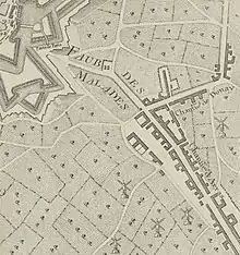L'entrée de la rue d'Arras (embranchement avec la rue de Douai était sous l'ancien régime, la limite de la banlieue de la ville de Lille, c'est-à-dire le territoire où les ordonnances des échevins de Lille ne s'appliquaient plus.