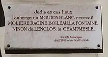 - No 40 : Auberge du Mouton Blanc, qui accueillit Molière, Racine, Nicolas Boileau, Jean de La Fontaine, Ninon de Lenclos et mademoiselle de Champmeslé[8],[4]. Une plaque apposée sur la façade le précise.