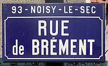 La rue de Brément est l'une des artères principales de Noisy-le-Sec, dans la région Île-de-France en France, sur le tracé de la route départementale 116.