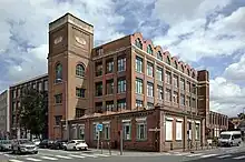 A l’extrémité de la rue, en arrivant au viaduc du métro, l’ancienne usine Wallaert avec sa tour datant de 1894 est un immeuble de bureaux[2].