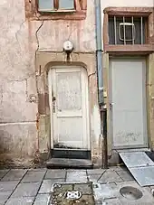 - « 8 Z 2210 - Strasbourg, 3 et 5 rue de l'Étal, droguerie et salon de coiffure. », photographie Lucien Blumer, sans date, l'immeuble no 5 a été démoli à la suite des bombardements de 1944 (Archives de Strasbourg)