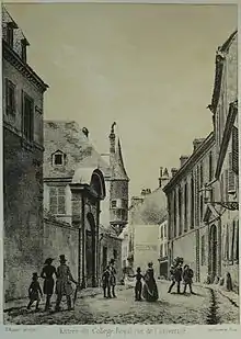 La rue au XIXe siècle avec l'entrée du collège sur la gauche.