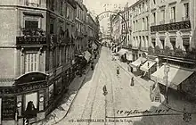 Elle se dénommait au XIXe siècle « rue du Cardinal » dans sa partie supérieure (de la Grand-Rue à l'actuelle place Jean-Jaurès) et « rue du Gouvernement » dans sa partie inférieure côté place de la Comédie[3]. L'hôtel de ville de Montpellier a été situé à son extrémité supérieure, façade donnant sur l'actuelle place Jean-Jaurès, de 1362 à 1816. Avant la création de la place de la Comédie (1755), cette artère donnait à son extrémité sud-est sur la porte de Lattes.