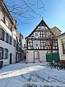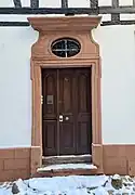 - Cette maison à colombages du XVIIIe siècle, qui jouxte l'école, est dotée d'une porte à imposte donnant sur la rue[1].