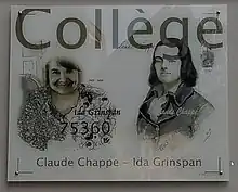 Au no 9 : Collège Claude-Chappe-Ida-Grinspan, honorant l'inventeur du télégraphe Claude Chappe, qui fit ses premiers essais non loin d'ici (voir à Rue du Télégraphe), et, depuis le 9 juin 2021, la survivante de la Shoah Ida Grinspan qui a habité dans le quartier.
