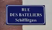 À partir de 1995, des plaques de rues bilingues, à la fois en français et en alsacien, sont mises en place par la municipalité lorsque les noms de rue traditionnels étaient encore en usage dans le parler strasbourgeois[6]. Le nom de la rue est ainsi sous-titré Schifflitgass[7].