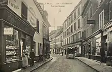 Il s'agit de l'une des plus anciennes rues de Suresnes. La voie porte à l'origine le nom de rue D'En-Bas, par opposition à la rue D'En-Haut (actuelle rue Émile-Zola). Ces deux axes parallèles coincés entre le mont Valérien et la Seine marquent alors les limites ce « paisible village de cultivateurs et de vignerons » que le développement des transports au XIXe siècle (trains, routes, pont) participera à désenclaver[6],[7], permettant à Suresnes de s'urbaniser et de devenir une ville industrielle. Les nouvelles usines et logements ouvriers sont alors érigés à la place de propriétés bourgeoises et aristocratiques de l'Ancien Régime construites autour du village aux XVIIe – XVIIIe siècles, par des bourgeois et aristocrates parisiens en quête de lieux de villégiatures proches de la capitale : par exemple Louis II de La Trémoille, duc de Noirmoutier possédait une propriété située entre la rue du Pont, la rue du Bac, la rue des Bourets et la Seine[8].