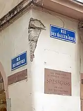 Des plaques de rues bilingues, à la fois en français et en alsacien, sont mises en place par la municipalité à partir de 1995[6]. C'est le cas de la Spiessgass.