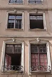 - La maison est mise au goût du jour pour l'orfèvre Jean-Jacques Braun en 1751. Elle est décorée de masques représentant Mercure et trois Humeurs (?). Une niche porte la date 1785, une grille, le monogramme M.C.[17]