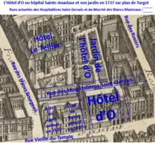 La rue des Hospitalières-Saint-Gervais s'est appelée « rue des Dames-hospitalières », et plus anciennement « passage des Dames-Saint-Gervais ».
