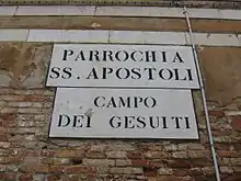 - Place, pont et canal des Jésuites (Prato dei Gesuiti, Ponte dei Gesuiti, rio dei Gesuiti), à Venise