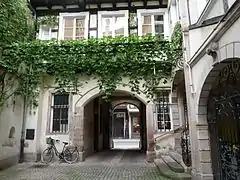- L'existence de cette maison, dont le jardin donne alors sur la rue des Frères, est attestée au début du XVIIe siècle. L'ajout d'un oriel et d'une saillie à la façade est accordée en 1667, puis de nombreuses transformations sont effectuées. Au XXIe siècle, l'oriel aux montants sculptés et un corbeau en bois dans le passage donnant vers la cour restent visibles[8].