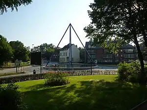 - L’oeuvre de Guy Bauclair titrée “Pensée verticale“ est installée au centre du rond-point au croisement de la rue des Pêcheries et de l’avenue de la Houlette. Elle reprend le principe du Pendule de Foucault.