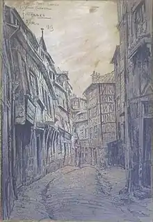 - Ces indices archéologiques du XIe siècle retrouvés au centre de la rue sont probablement situés à l'angle Nord-Est de la muraille de la ville romaine rectangulaire, construite après les premières invasions barbares[6].