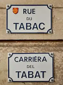 La rue du Tabac tient son nom de la première manufacture des Tabacs de la ville, installée par l'entrepreneur bordelais François-Bernard Boyer-Fonfrède dans les bâtiments de l'ancien prieuré bénédictin de la Daurade en 1812[1].