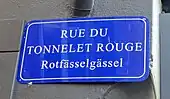 Des plaques de rues bilingues, à la fois en français et en alsacien, sont mises en place par la municipalité à partir de 1995[3]. C'est le cas du Rotfässelgässel.