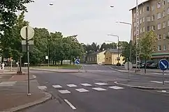 Rue du parc de Kaleva du coin de Väinölänkatu vers le sud. | |