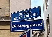 À partir de 1995, des plaques de rues bilingues, à la fois en français et en alsacien, sont mises en place par la municipalité lorsque les noms de rue traditionnels étaient encore en usage dans le parler strasbourgeois[4]. Le nom de cette voie est alors sous-titré Brischgässel.