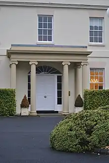 La maison est construite en brique qui était autrefois stuquée. Elle est coiffée d'un toit en ardoise à faible pente dissimulé par un parapet bas. La façade symétrique de deux étages a cinq baies avec un portique de colonnes ioniques cannelées sur une large porte avec une imposte. La maison a quatre fenêtres à guillotine à 15 carreaux au rez-de-chaussée, avec cinq fenêtres à 12 carreaux au premier. Certaines têtes de bec portent les initiales de Sir Thomas Dalrymple Hesketh et la date 1811 et une est datée 1822. Le hall d'entrée est percé d'un escalier en porte-à-faux ou volant en pierre et palier sur trois côtés avec des balustres en fer forgé et est éclairé par une lucarne ovale en forme de dôme [1]. La salle principale a des colonnes et des pilastres en marbre de Scagliola.