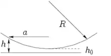 Or, la distance h entre les deux surfaces s'exprime comme . Il s'ensuit que la majeure partie de l'intégrale correspond à une région où a est au maximum de l'ordre de . Pour un contact à l'échelle atomique ( 0,1 nm) et pour les rayons de courbure typiques ( 100 µm), cela correspond à une région de rayon 0,1 µm.