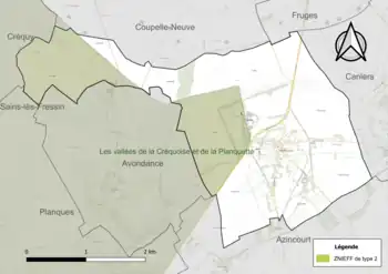Le territoire communal comprend une ZNIEFF de type 2[Note 2] : les vallées de la Créquoise et de la Planquette, d’une superficie de 15 157 hectares et d'une altitude variant de 13 à 181 mètres. Ces deux vallées se situent aux confins de deux régions naturelles : le Haut Pays d’Artois et le Ternois et constituent un des paysages ruraux traditionnels du Nord-Pas-de-Calais les mieux conservés[10].