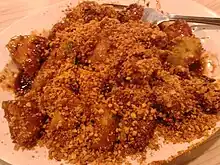 Le pasembor que l'on trouve à Singapour est un assortiment de pommes de terre, d'œufs, de tofu et de crevettes frites dans une sauce sucrée et épicée à base de piment.