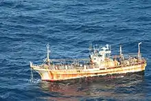 Vue aérienne du Ryō Un Maru à la dérive le 4 avril 2012. | |
