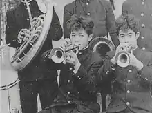 De son côté, l'ancien enka-shi (chanteur de rues) Haruo Oka fait ses débuts avec la chanson Kokkyō no Haru (国境の春, litt. « Printemps à la frontière ») sortie en 1939. Yoshio Tabata fait également ses débuts avec Shima no Funauta (島の舟唄, litt. « Chanson du bateau des îles ») en 1939. Le rōkyoku (naniwa-bushi) est utilisé pour rehausser le prestige national[20].